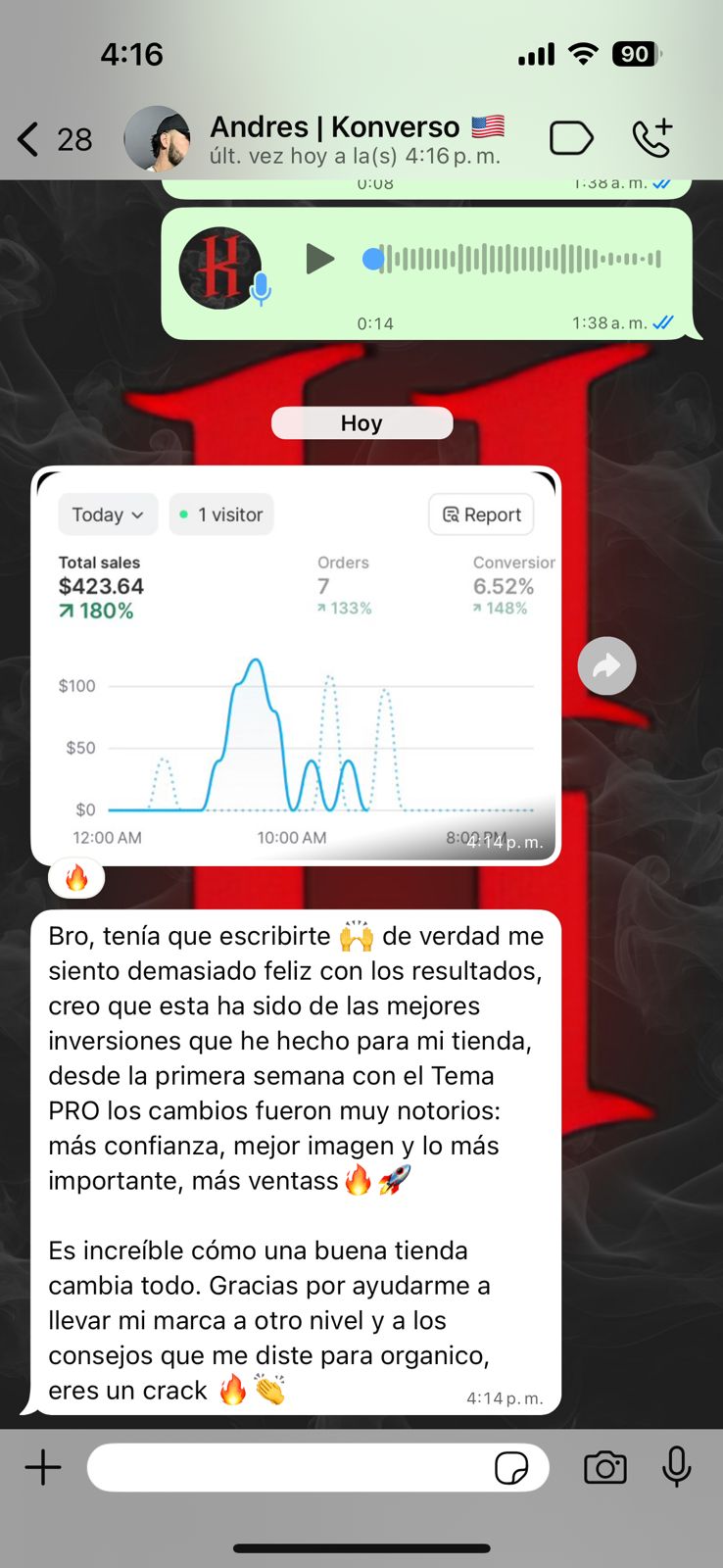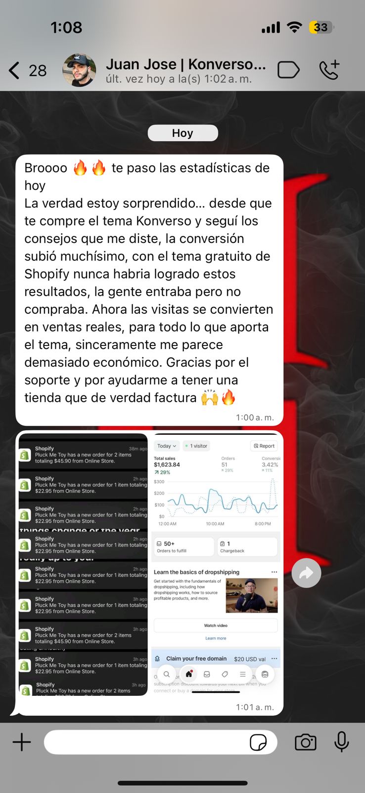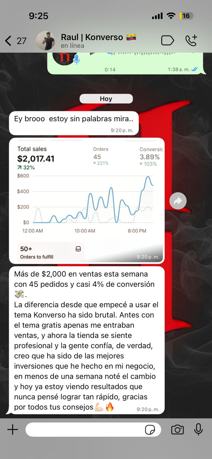 Konverso cambió mi tienda por completo. Ahora no solo vendo más, sino que mis clientes me dicen que se ve súper profesional.